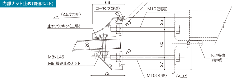 ボルト2段の簡単施工設計ボルトピッチ400mm。イレギュラー対応可能です。